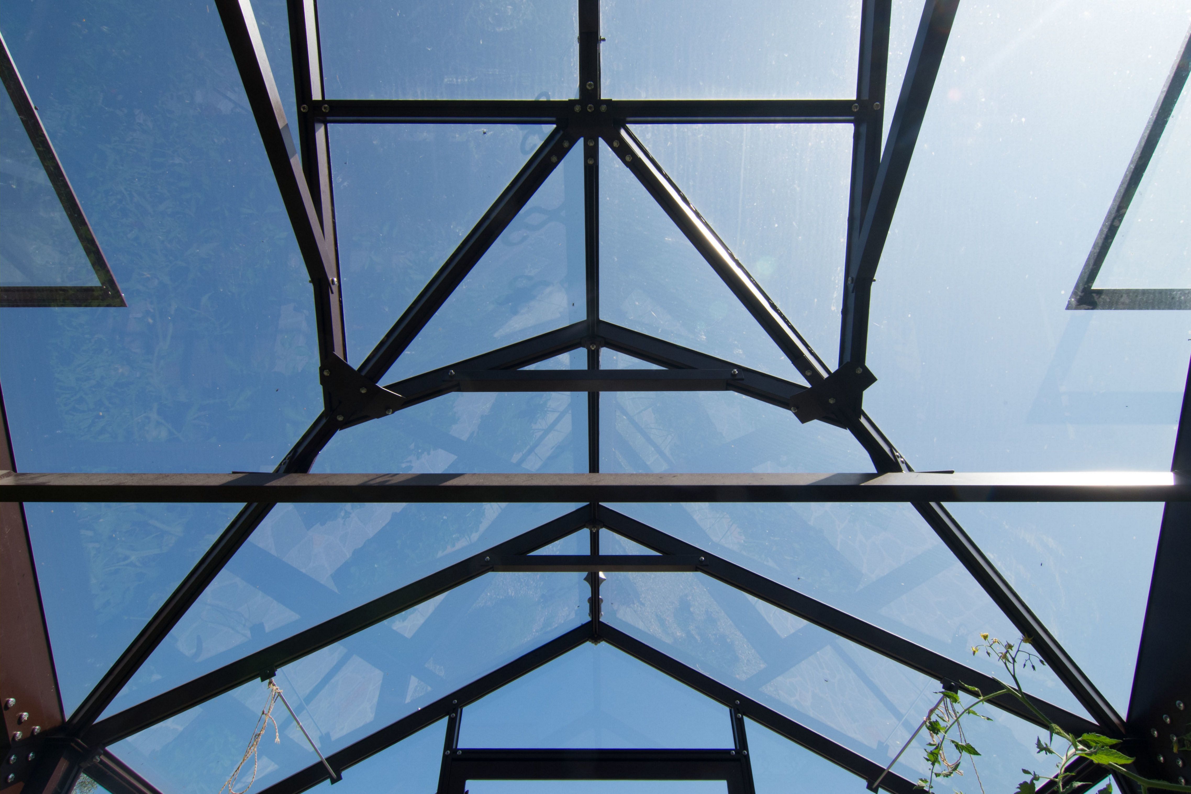 Длина теплицы - 6,6 м., в комплекте: дверь-купе, 2 торцевые форточки и 6 в скате крыши.